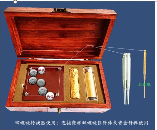 四螺旋转换器是一款很好的祛病气的产品,配合摆放泰山玉符,结合病因病位对应到人体经络全息对应点处,其应用需要大家